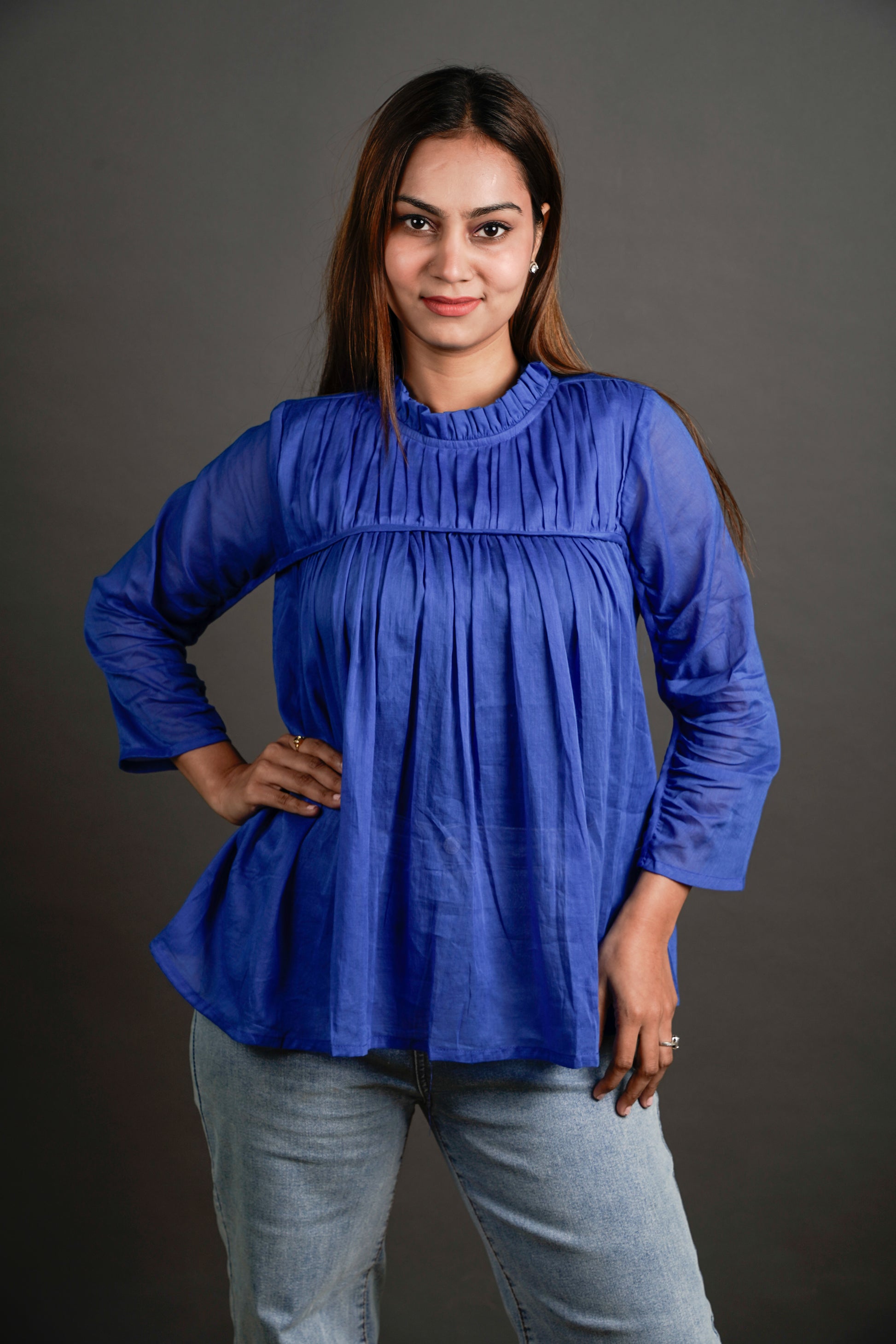 The Gathered Grace Top Royal Blue