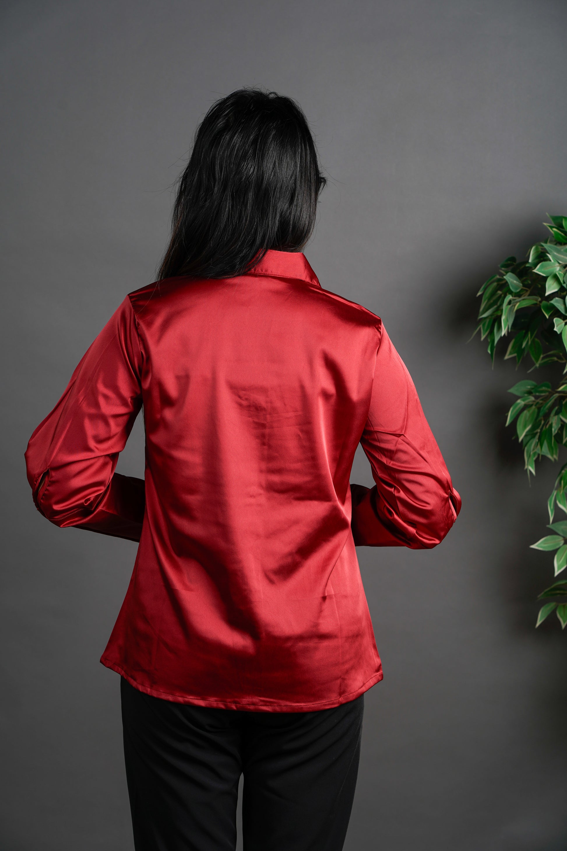 With its bold collar and fluid satin body, this shirt is all about precision and presence. It’s clean, commanding, and effortlessly elegant — made for women who know when to speak up and when to let the outfit do the talking. From high-pressure mornings to after-hours plans, this one moves like you do.