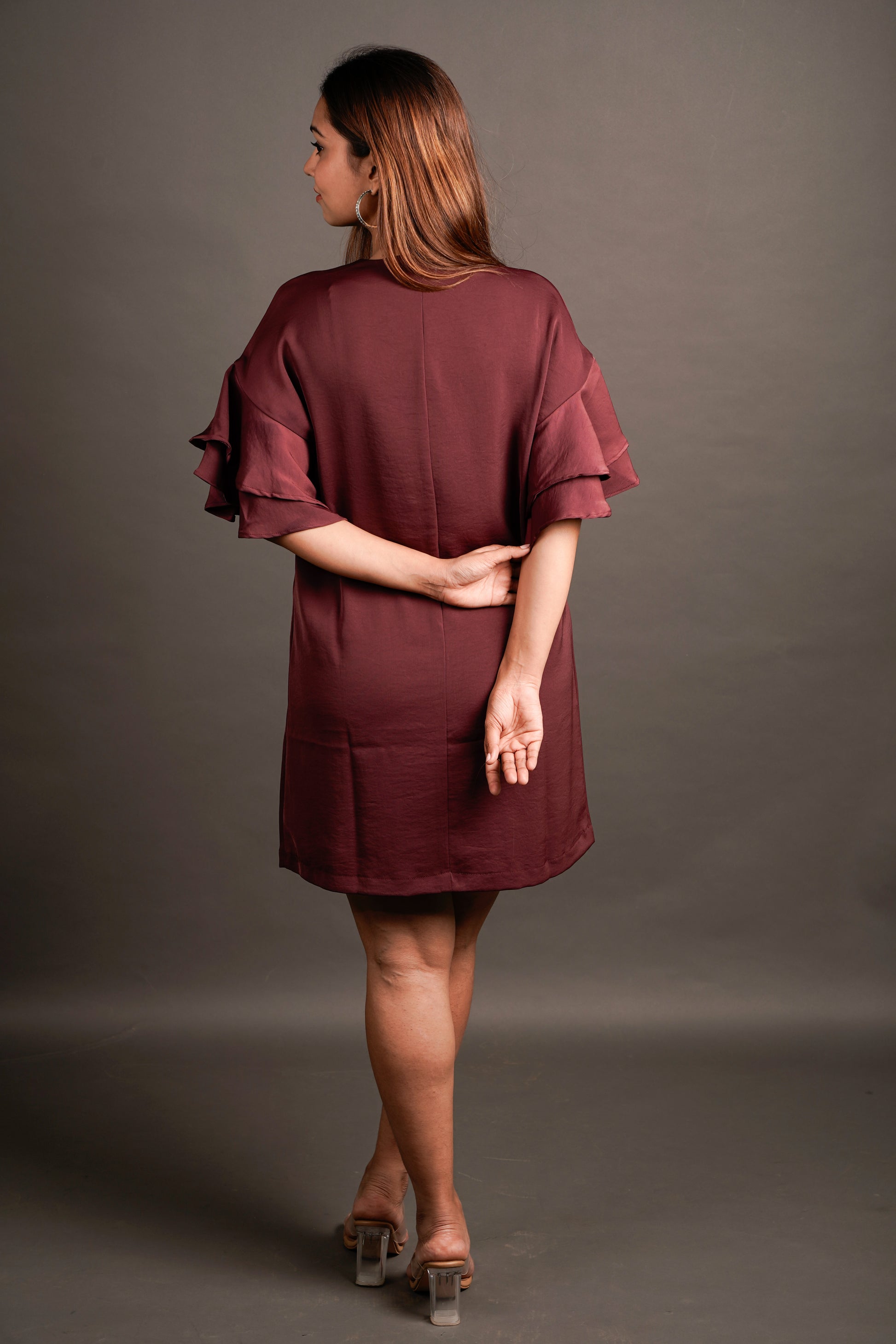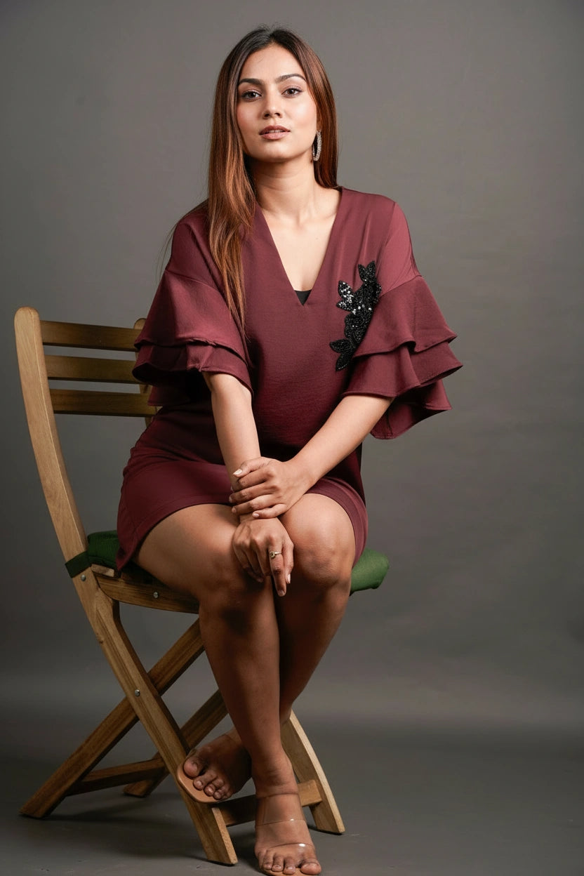 This georgette dress brings together structure and femininity — with a fluid drape that moves with you and bold patch accents (customizable to your flair). Designed for long days that roll into longer evenings, it’s an easy upgrade from your usual shift dress — light, breathable, and full of quiet confidence.